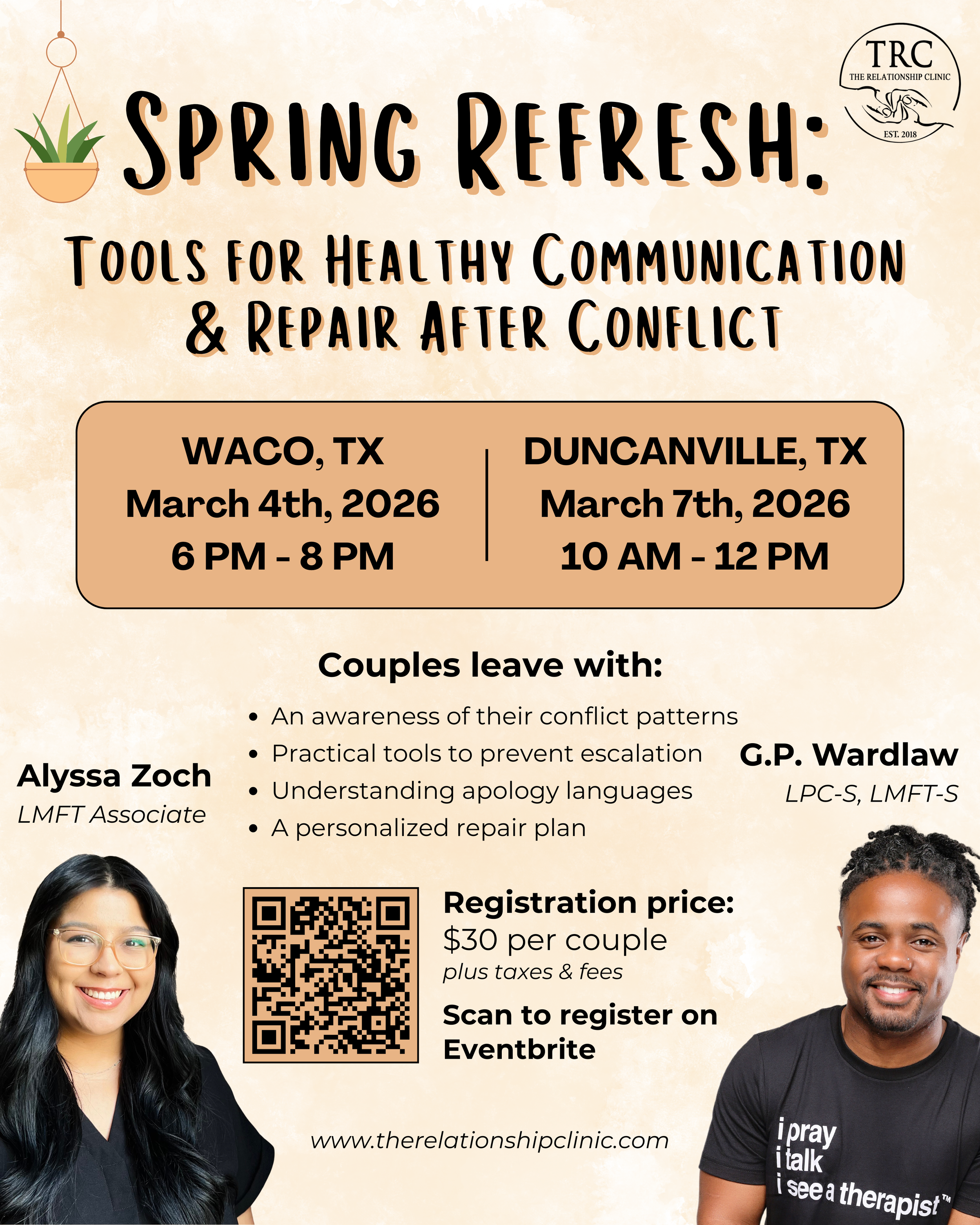 Whether you are dating, engaged, or married, this workshop will equip you with tools to communicate with clarity, repair with intention, and build a more secure and connected relationship.
